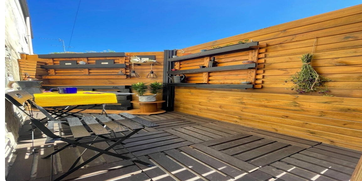 - Une terrasse clôturée de 25 m² avec mobilier aux beaux jours (aménagée pendant le printemps et en été)